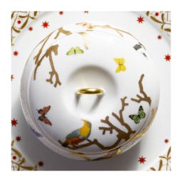 The Aux Oiseaux dinnerware collection by Bernardaud invites nature's charm to your table. Showcasing a vibrant array of birds elegantly perched on gilt branches, the fine Limoges porcelain is further adorned with colorful butterflies fluttering above. Influenced by curiosity cabinets and the techniques employed in traditional Japanese prints, Bernardaud's imaginative décor transports guests to the chambers of wonders of the sixteenth and seventeenth centuries. These precursors to modern museums displayed a variety of objects, including the captivating avian creatures now celebrated in the Aux Oiseaux collection.