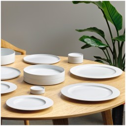 Designed by Foster + Partners in collaboration with Fürstenberg, Datum white is a modular porcelain dinnerware collection defined by clean lines, smart geometry, and versatile functionality. Plates, bowls, cups, and mugs are dimensionally coordinated for seamless stacking and multipurpose use. Crafted from premium porcelain, the collection is available in classic white with a glossy or satin finish. Selected pieces also come in solid-coloured stone grey and slate black for visual contrast. Innovative details—like using a plate as a lid—reflect the thoughtful design behind each form. Winner of the Red Dot Award 2023, Datum is a modern solution for elegant, practical dining—at home or in professional kitchens.