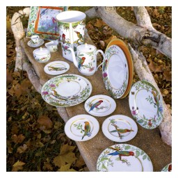 Alain Thomas, a celebrated French artist and pioneer of "naïve-primitive" painting, invites us on a captivating journey through his contemporary world, from exotic landscapes to enchanting Russian forests. Collaborating with Haviland since 2003, Thomas applies his masterpieces onto porcelain, showcasing diverse decorations and over 15 vibrant colors. Maison Haviland's meticulous reproduction of Thomas's works brings his exceptional vision to life on trays, vases, and table services. Immerse yourself in this extraordinary fusion of art and dining, where vibrant colors and intricate details create a sensory experience that celebrates beauty and creativity.