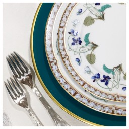 Léonce Ribière, a visionary designer, conceived a unique pattern for Empress Eugénie, which is now showcased in the Haviland Porcelain Museum in Limoges. His protégé, Lassère, refined this original design, forming the basis of the Impératrice Eugénie pattern. This particular design, produced by Haviland in 1967, continues to be a beloved classic in their collection today. The Impératrice Eugénie pattern echoes the cultural legacy of Empress Eugénie, underlining her significant contribution to the Napoleon III style. Adorned with a motif of delicate violets, the design transcribes the language of flowers onto porcelain. In floral symbolism, the violet stands for modesty, timidity, and decency, characteristics captured through the small corolla gently peeking from its leafy nest. This delicate symbolism imparts the pattern with a subtle, royal elegance.