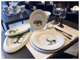 Designing dinnerware with hunting themes is a long-standing tradition among German porcelain manufacturers. Porcelain designer Stefanie Hering approaches this classic subject with a unique perspective, infusing her designs with a touch of playfulness and charm. The collection, created in collaboration with star chef Harald Rüssel, features delicate drawings of animals and plants found in forests, fields, and mountains, rendered in subtle shades of gray. One of the unique aspect of the collection is the ability for some pieces to be personalized upon request. Customers can choose their own motifs, as long as they can be adapted to the chosen form. This makes the collection even more special and unique. In addition to the detailed design and unique personalization option, the collection is also practical, as all pieces are dishwasher safe. It is a perfect blend of elegance and functionality.