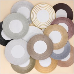 The Hémisphère Gold dinnerware collection stands as a testament to the superior quality of porcelain produced by J.L Coquet. The collection's hallmark is its remarkably broad, subtly textured edges, further elevated by a luxurious gold finish. Every piece of J.L Coquet porcelain is handcrafted in Limoges. The edges can be adorned with either a solid gold or a blend of gold and white stripes, providing a stylish contrast. Beyond this, the J.L Coquet Hémisphère Gold series is also available in an array of other colors, catering to diverse tastes and styles.