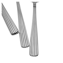 The America cutlery set, meticulously crafted and hand-finished in Italy, redefines dining elegance with its perfectly balanced weight ensuring easy handling. Available in radiant silver or silver-plated alpaca, it shines with style. The standout grooved pattern on the handles offers an innovative, original touch, making each piece not just a tool, but an emblem of taste and refinement. This set is a blend of exceptional craftsmanship, function, and flair, elevating your dining experience to a new level of sophistication.